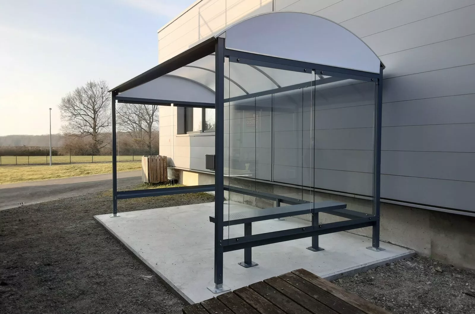 Pour le confort des fumeurs lors de leur pause cigarette, l’abri fumeur COMBRAILLES peut être accessoirisé avec différents équipements : éclairage pour abri, cendrier, poubelle, banc…