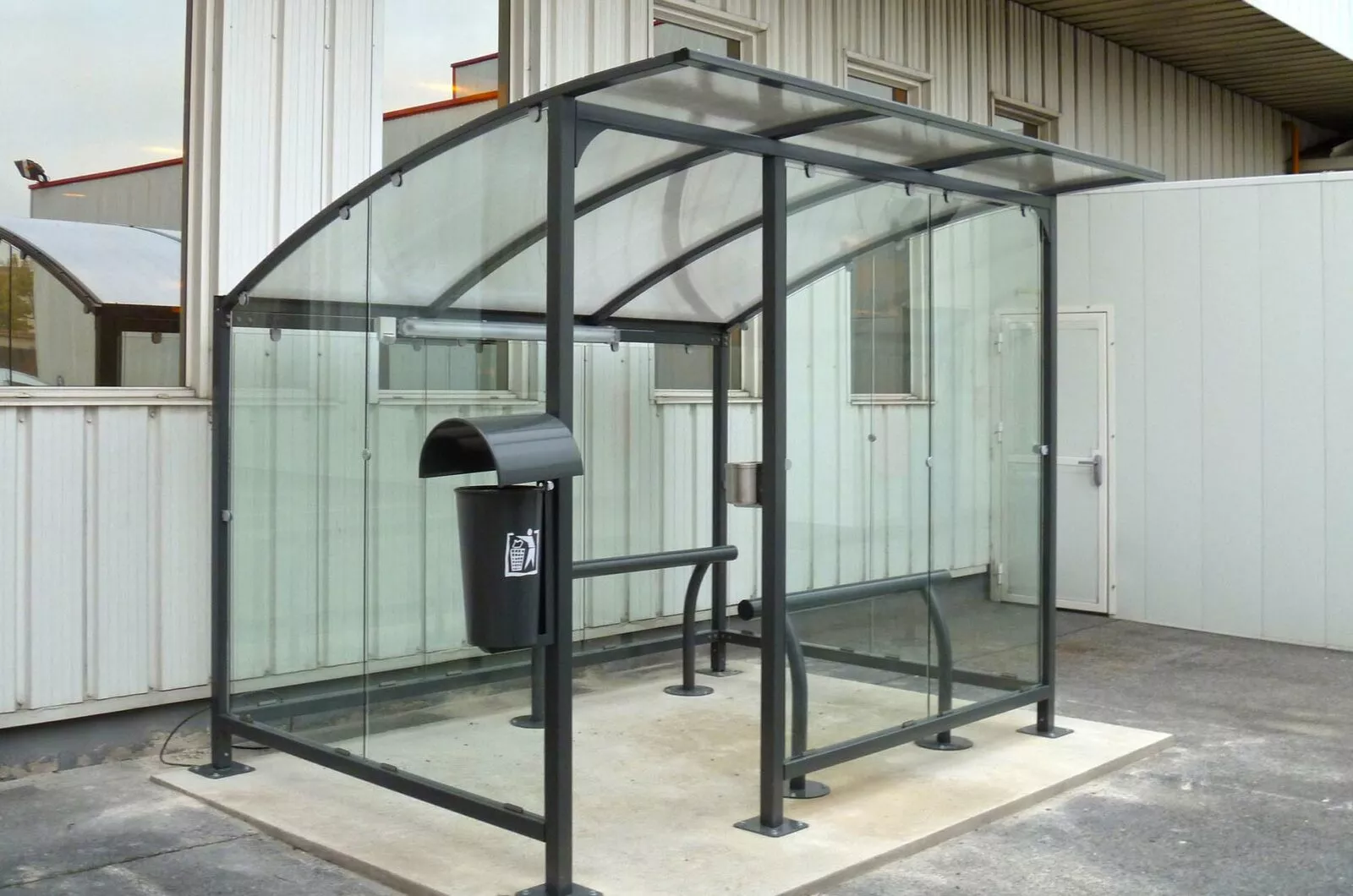 Une large gamme d’accessoires complète les fumoirs pour le confort de leurs utilisateurs : éclairage, cendrier ou encore banc assis-debout.