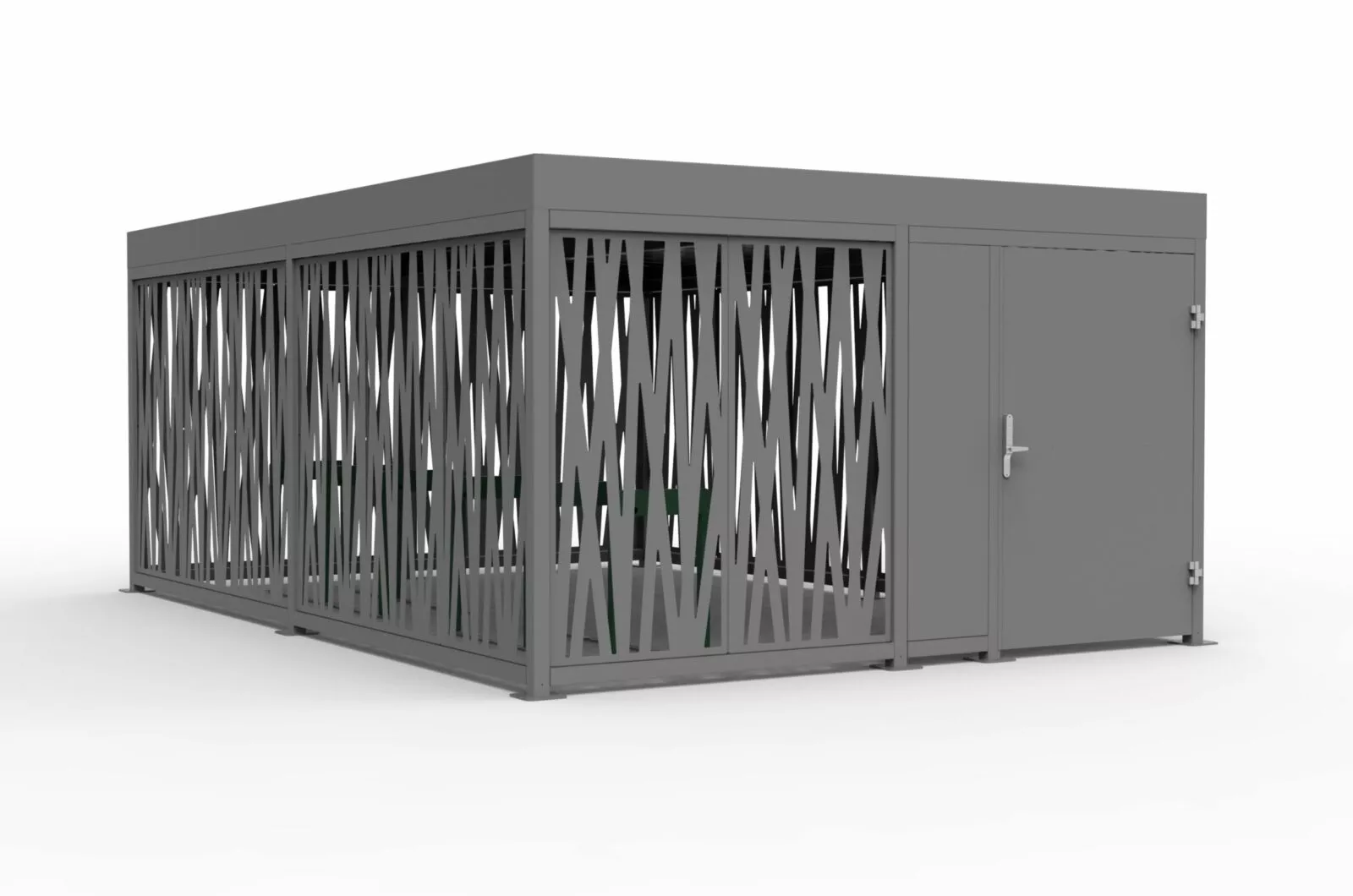 Comme pour nos abris vélos, vous pouvez choisir un design et un habillage afin que votre abri s’intègre plus facilement dans son environnement : habillage bois, tôle perforée, couleur, dimensions…