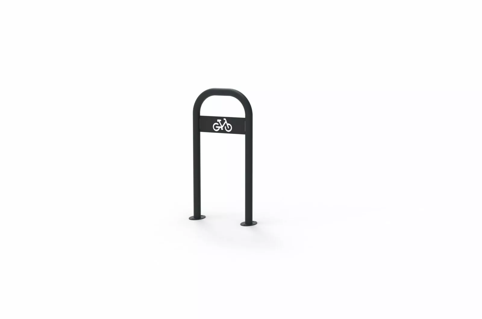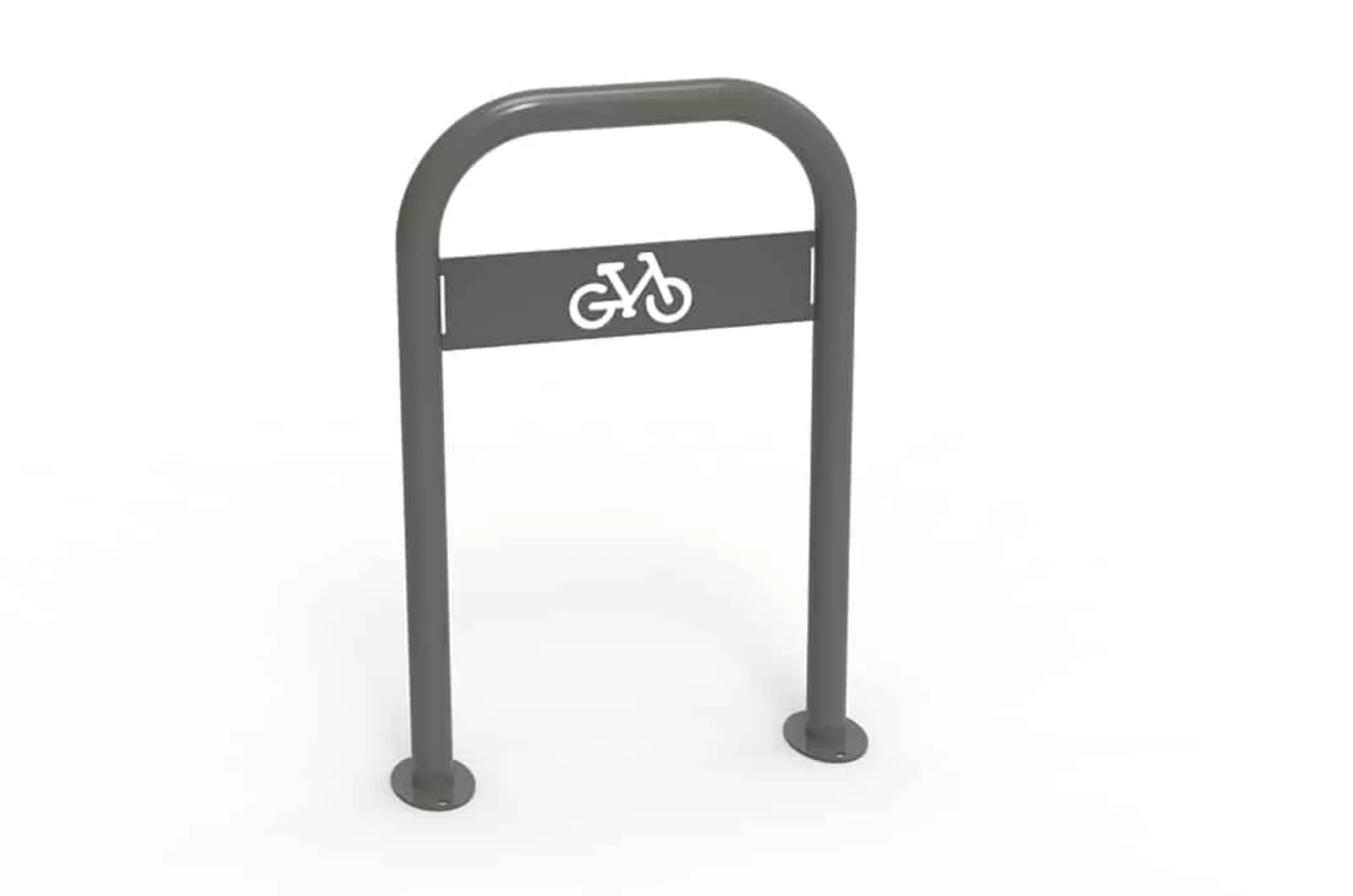 The cut-out bicycle motif on A bollards provides good visibility of bicycle parking spaces.