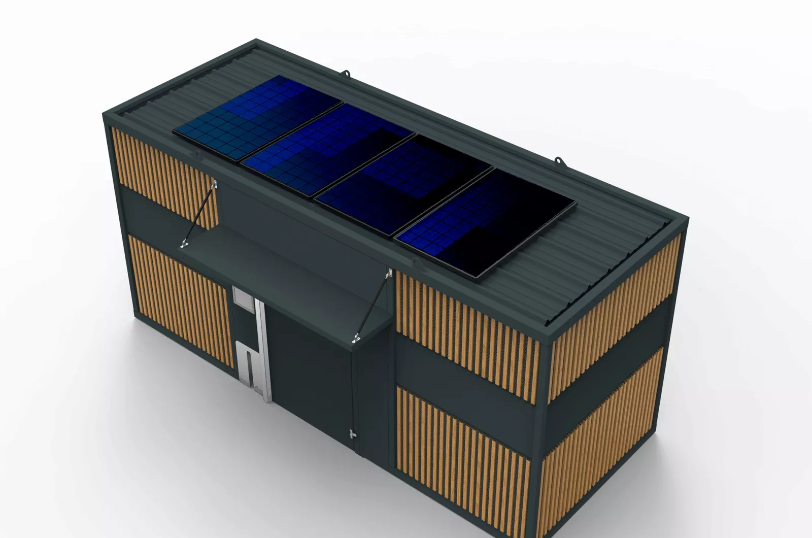 Abriplus installs and equips photovoltaic panels on the roof to power the secure bicycle shelters independently for essential functions: solar lighting, access control and recharging for electrically assisted bicycles (from 1 to 4 e-bikes).