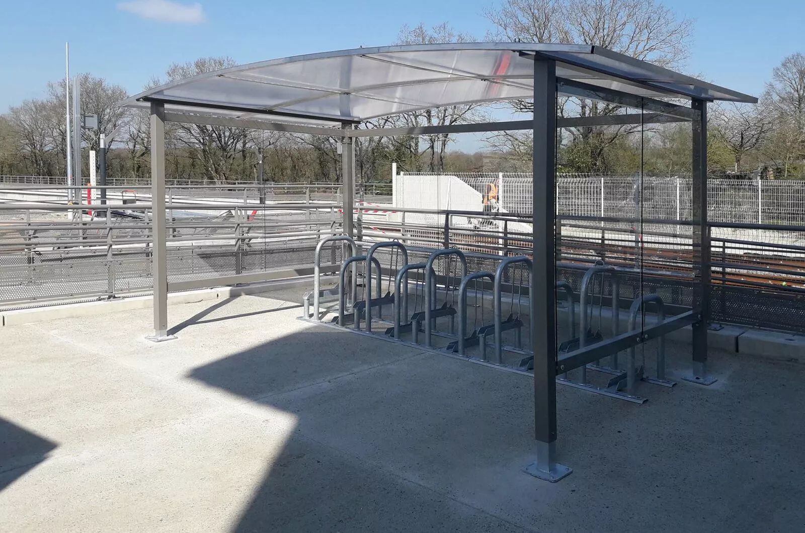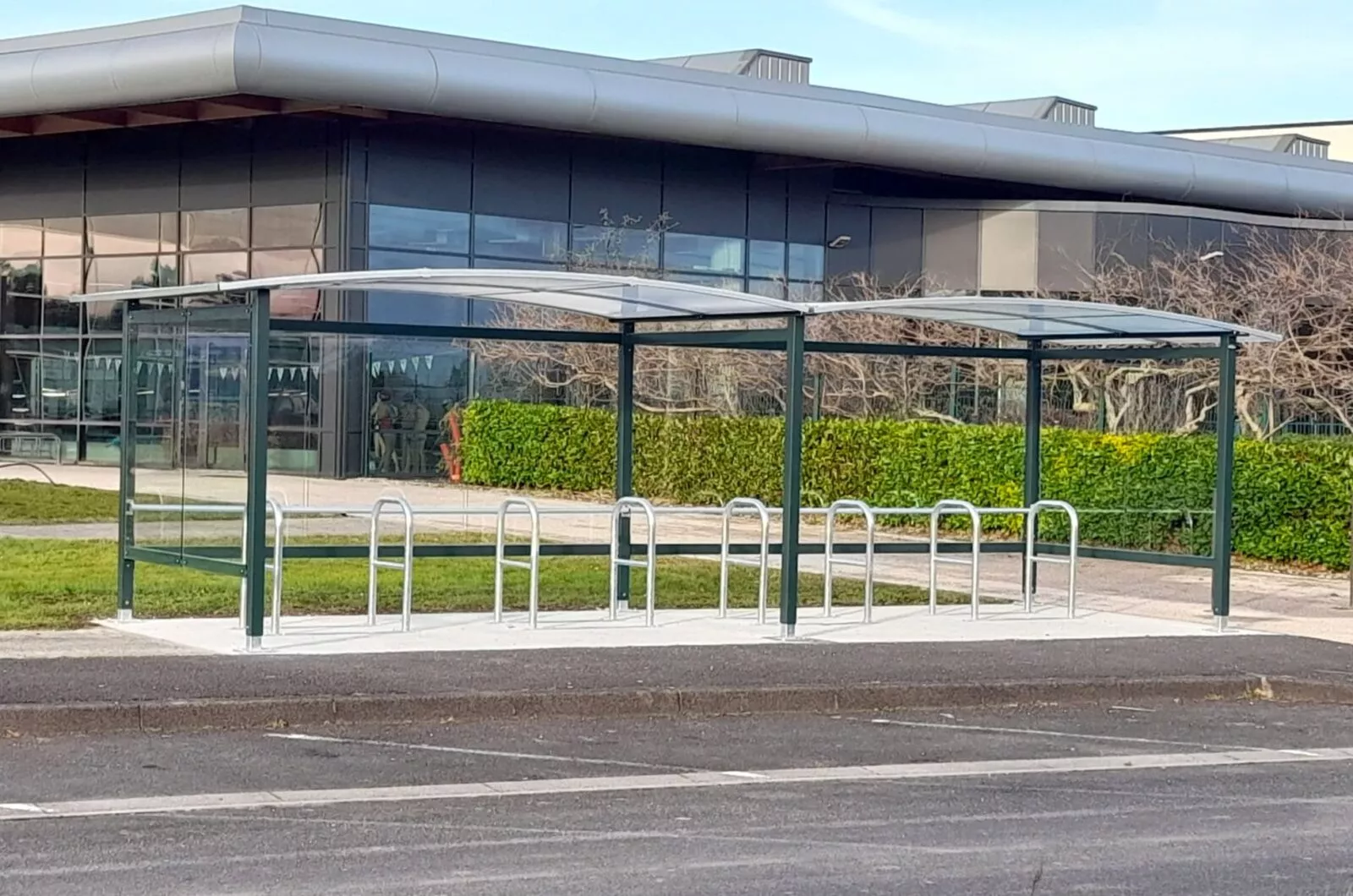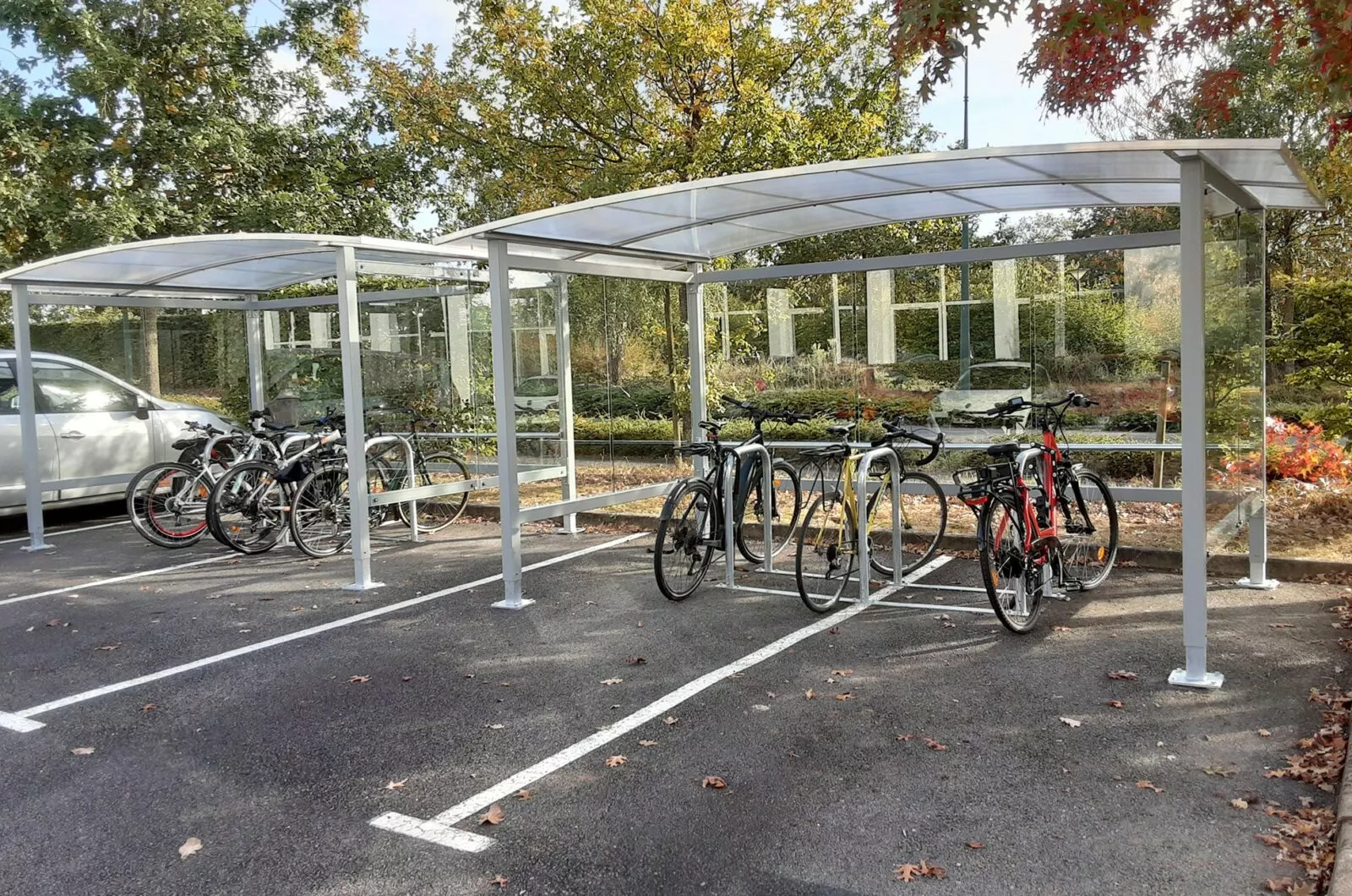 The VIADENE steel open bike park protects 2-wheelers while offering contemporary styling.