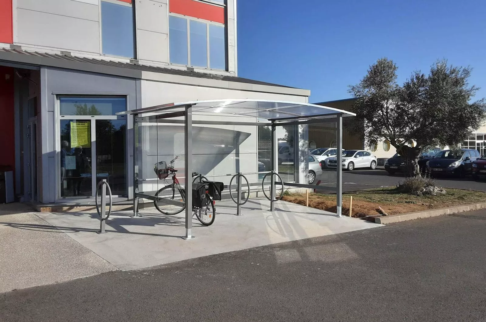 A large “mixed” shelter can be set up with part of the parking area dedicated to bicycles and another part reserved for two-wheelers. This allows cyclists to park their bikes freely.