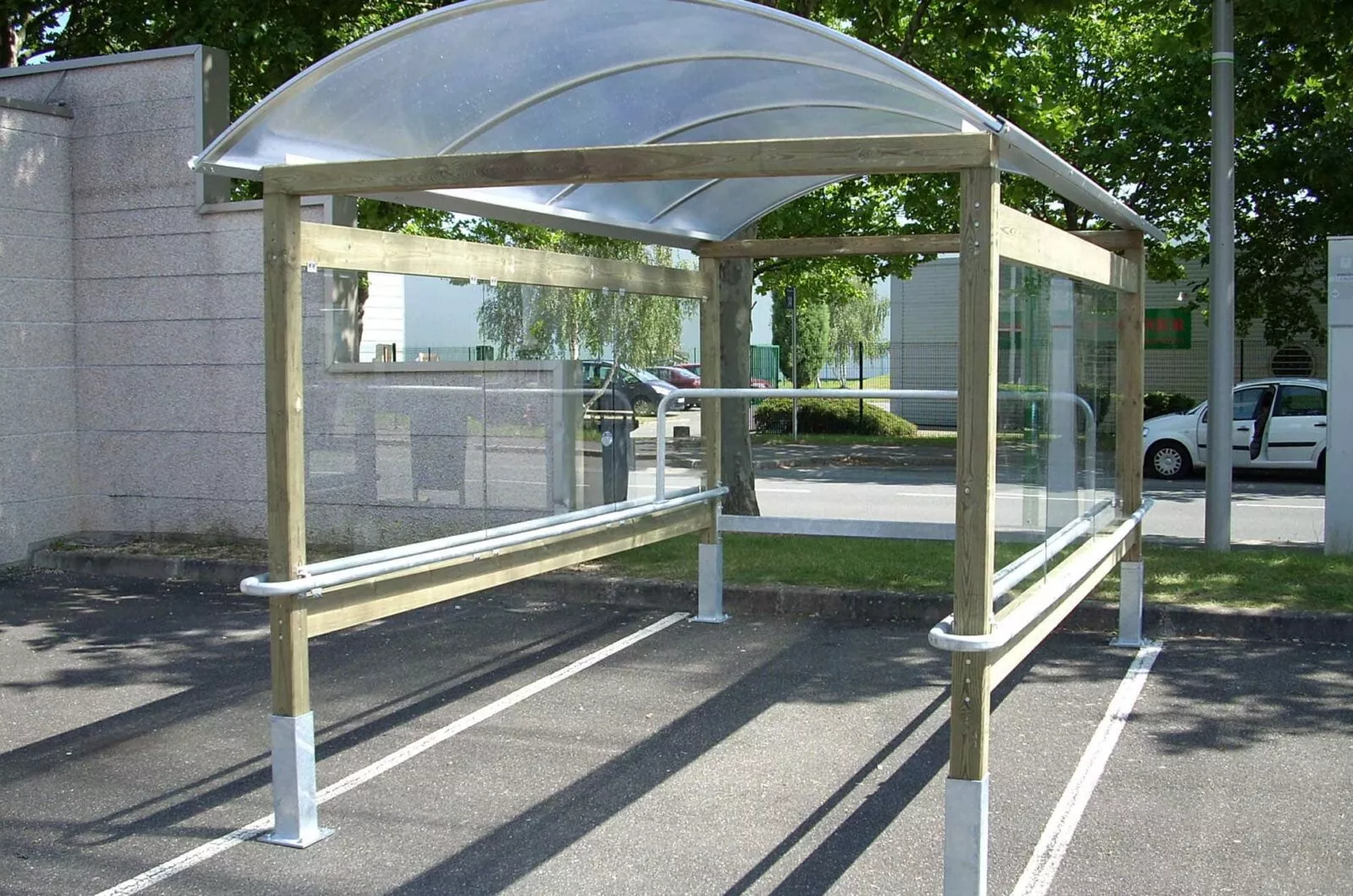 The GB wooden trolley shelter completes the wooden range. With its curved roof and natural styling, it brings softness to parking equipment.