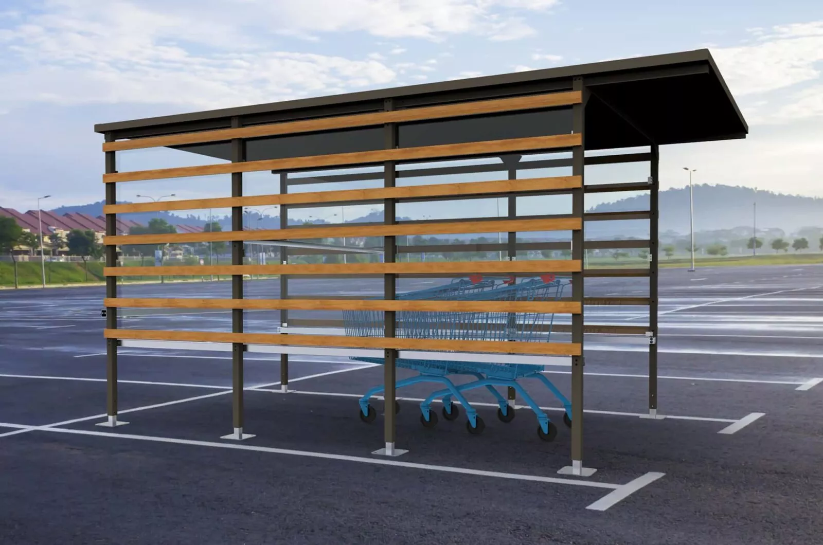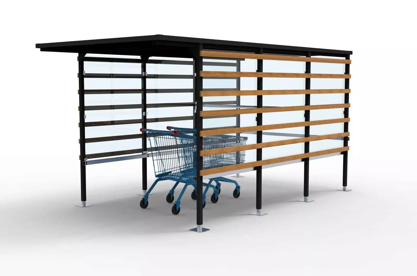 As options, theTP50 shopping cart shelter can be fitted with lane limiters and litter garbage cans, for example.