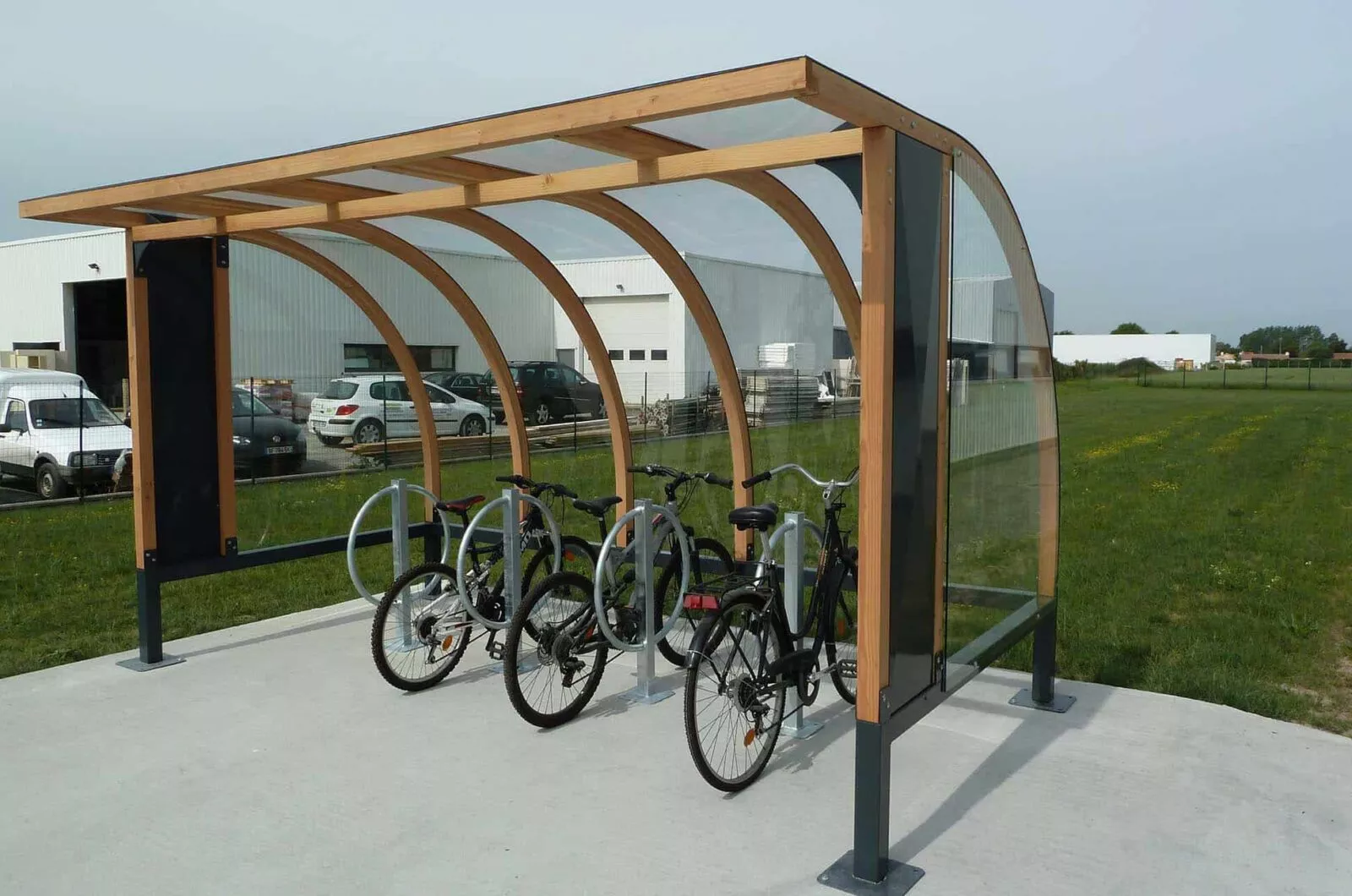 L’abri vélos ouvert Bois de Céné est reconnu pour son ossature en bois de Mélèze. Élégant, il s’intègre parfaitement au paysage et existe aussi en structure acier.