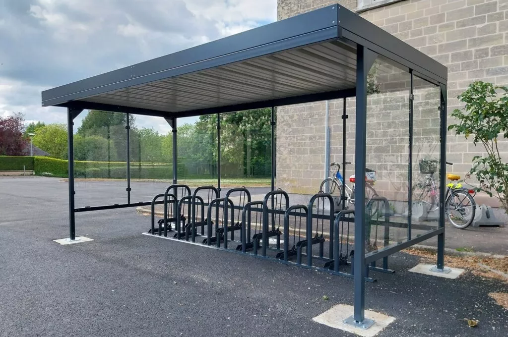 Grâce à la modularité des abris, le BEAULIEU double côte à côte offre une plus grande capacité d’accueil avec 18 emplacements pour deux-roues.