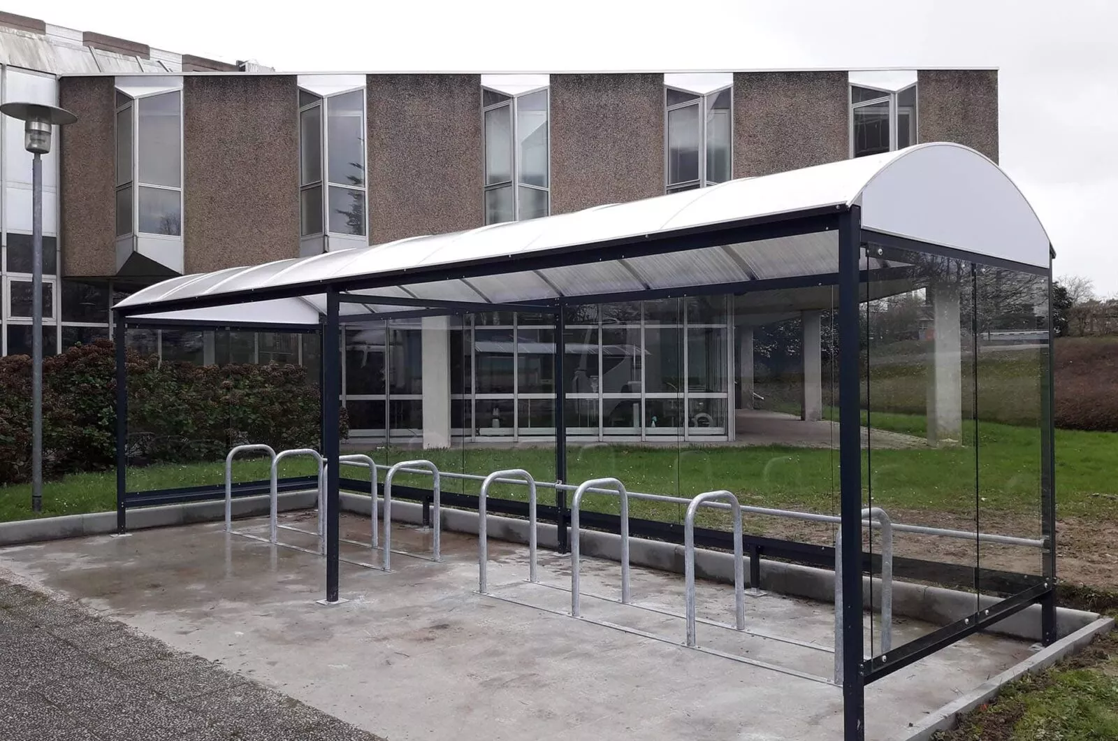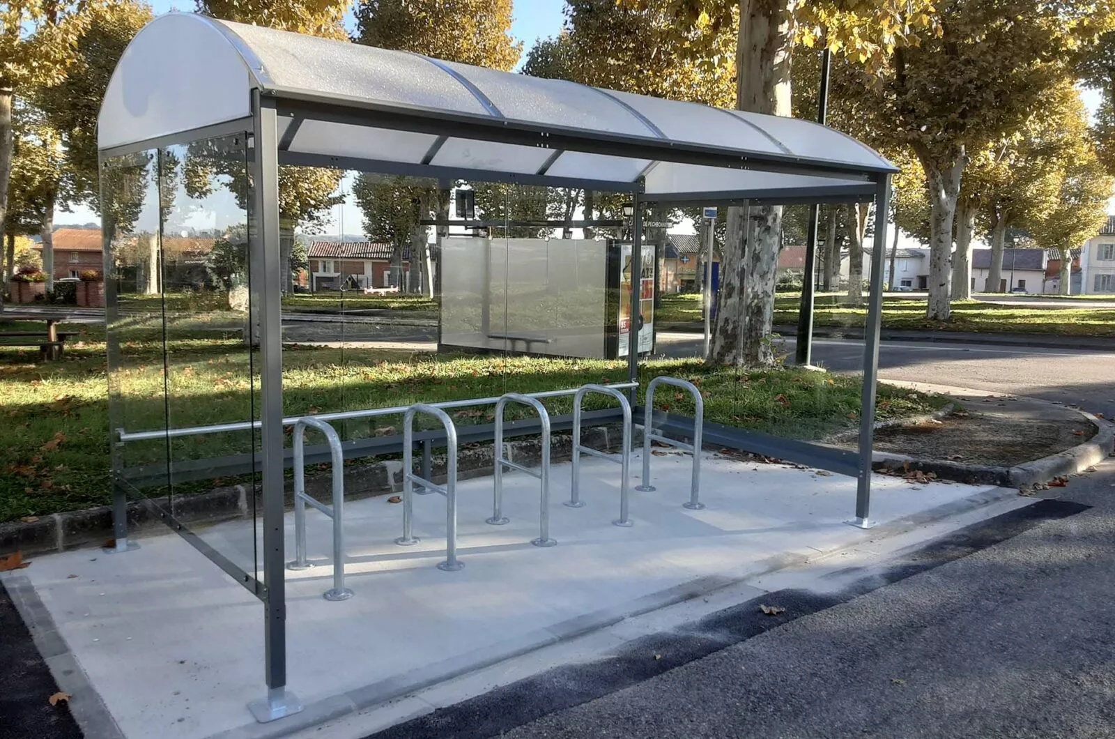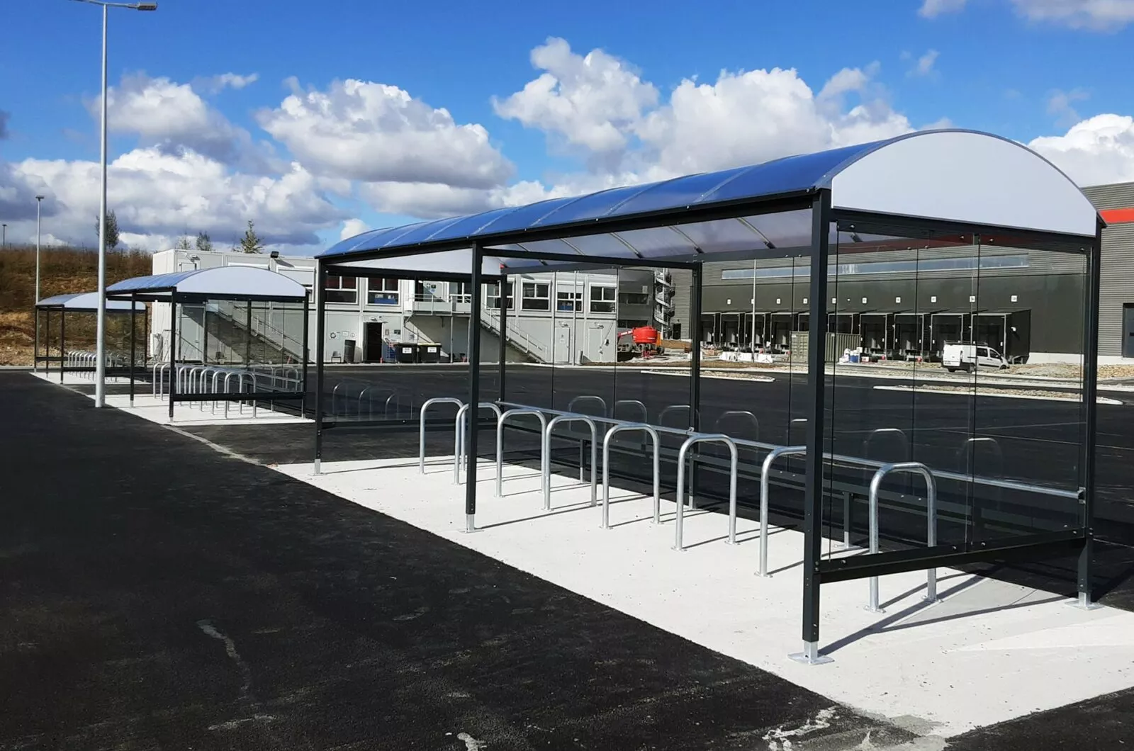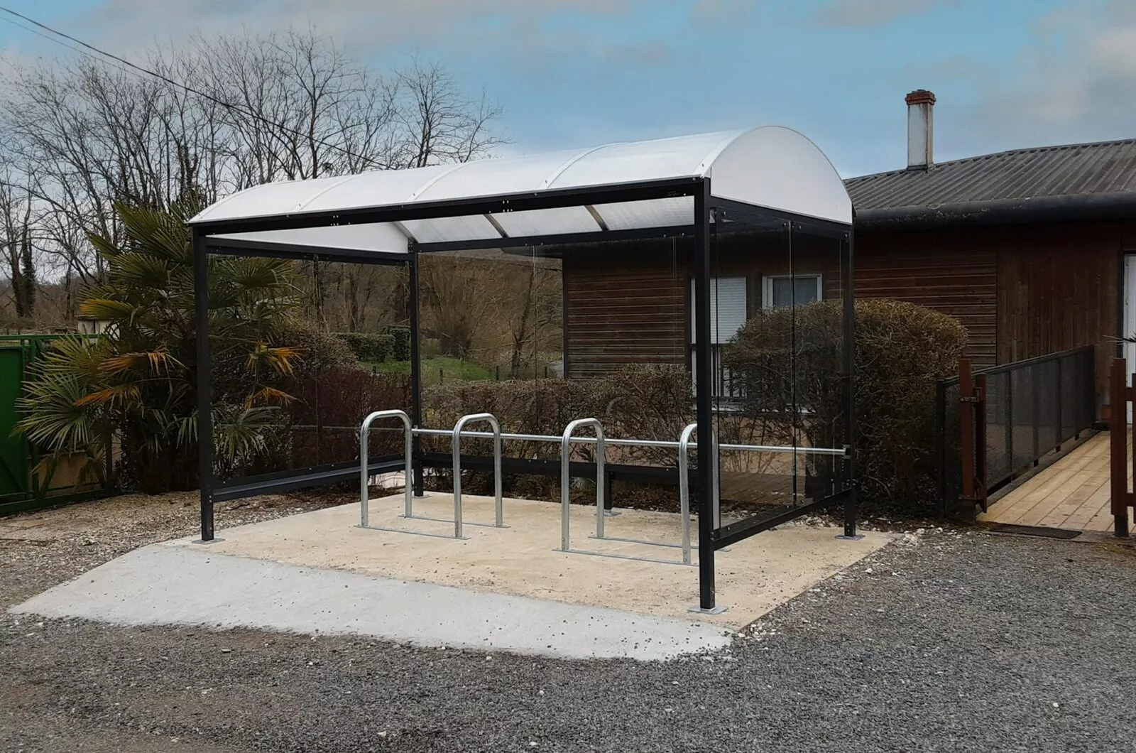 Modulable, l’abri vélos COMBRAILLES protège vélos et VAE. Pour le bien-être des utilisateurs, il est conseillé d’accessoiriser l’abri de bornes vélos ou de borne de recharge VAE.