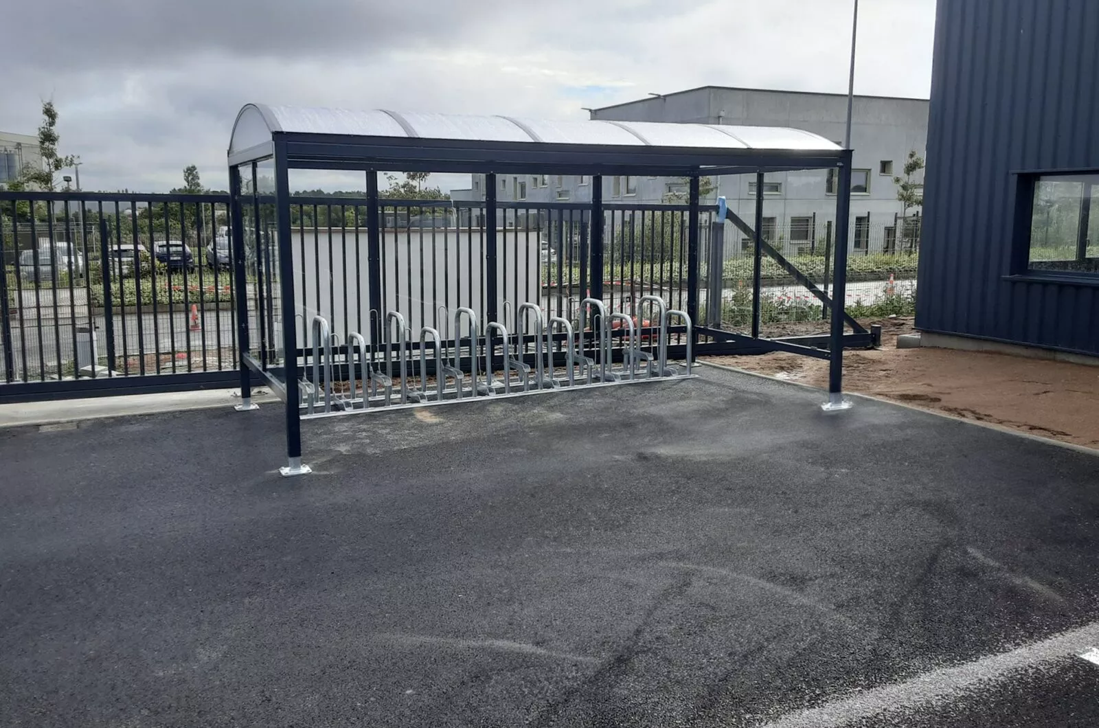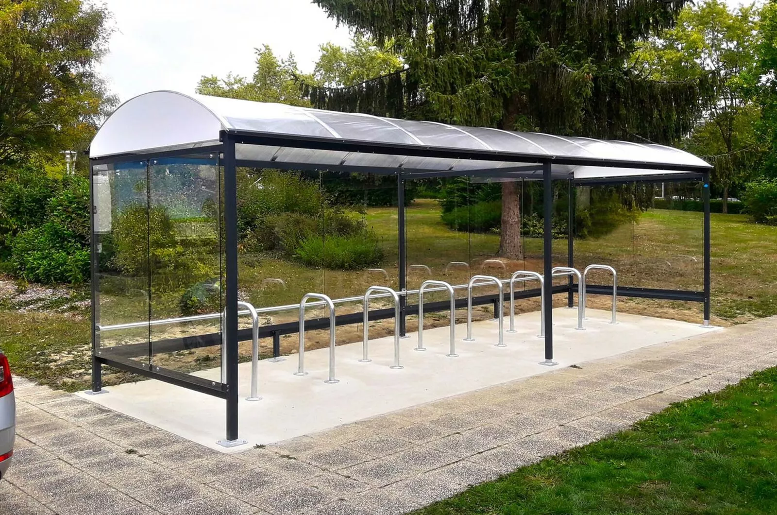 Le parking à vélos simple (4x2m) peut accueillir 10 vélos tandis que l’abri COMBRAILLES double (8×2) permet de stationner jusqu’à 21 vélos (en fonction du support vélos choisi).