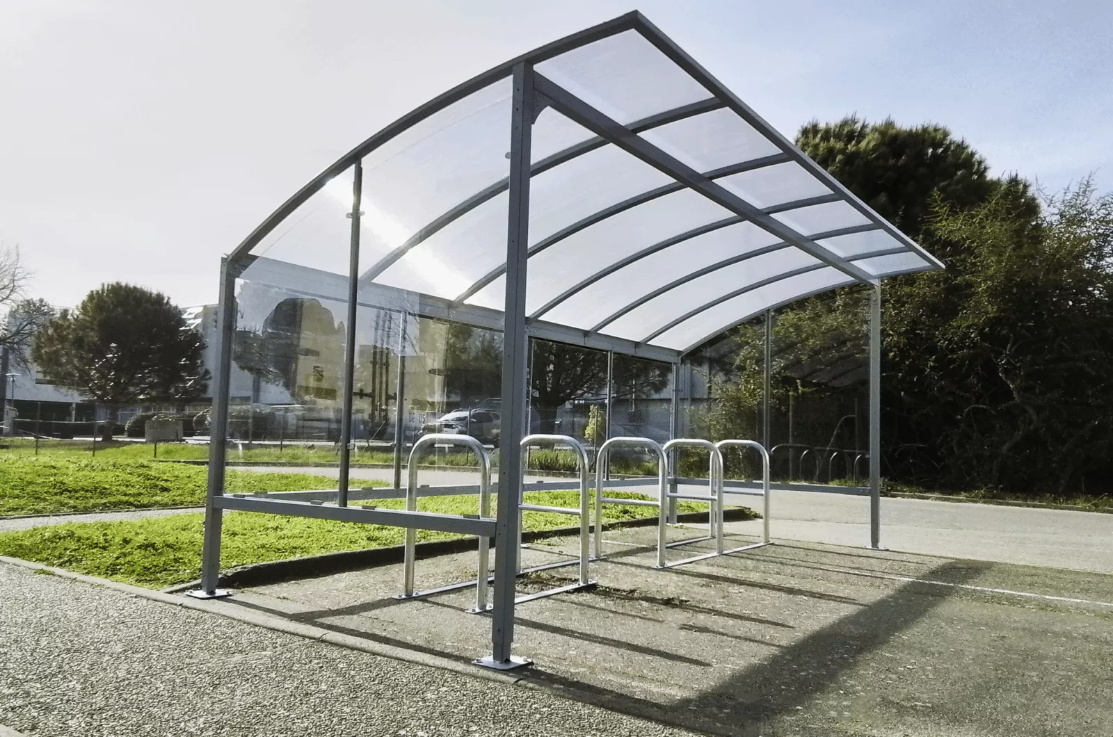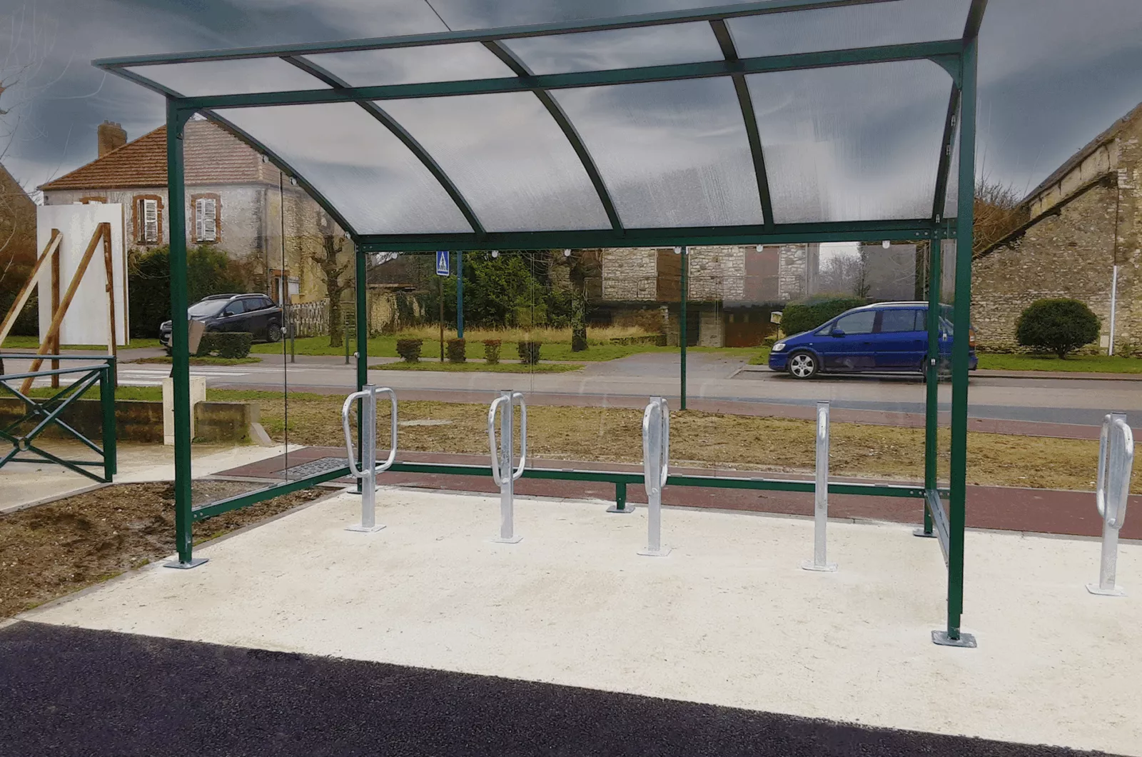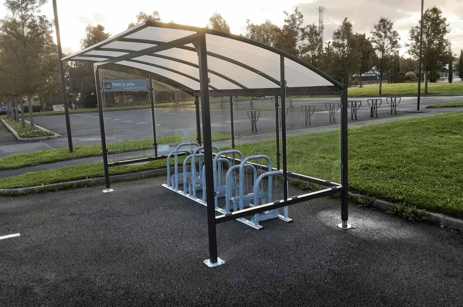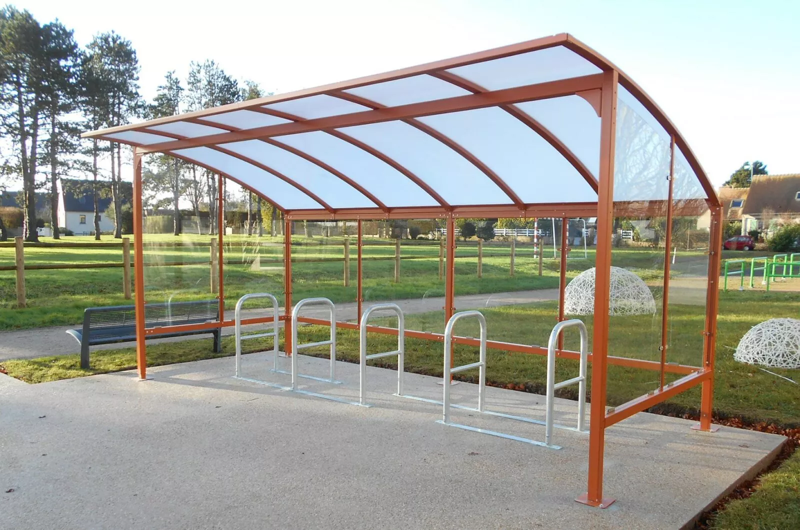 – Abri simple (4×2,5m) peut accueillir 10 emplacements vélos selon le support vélos choisi,
