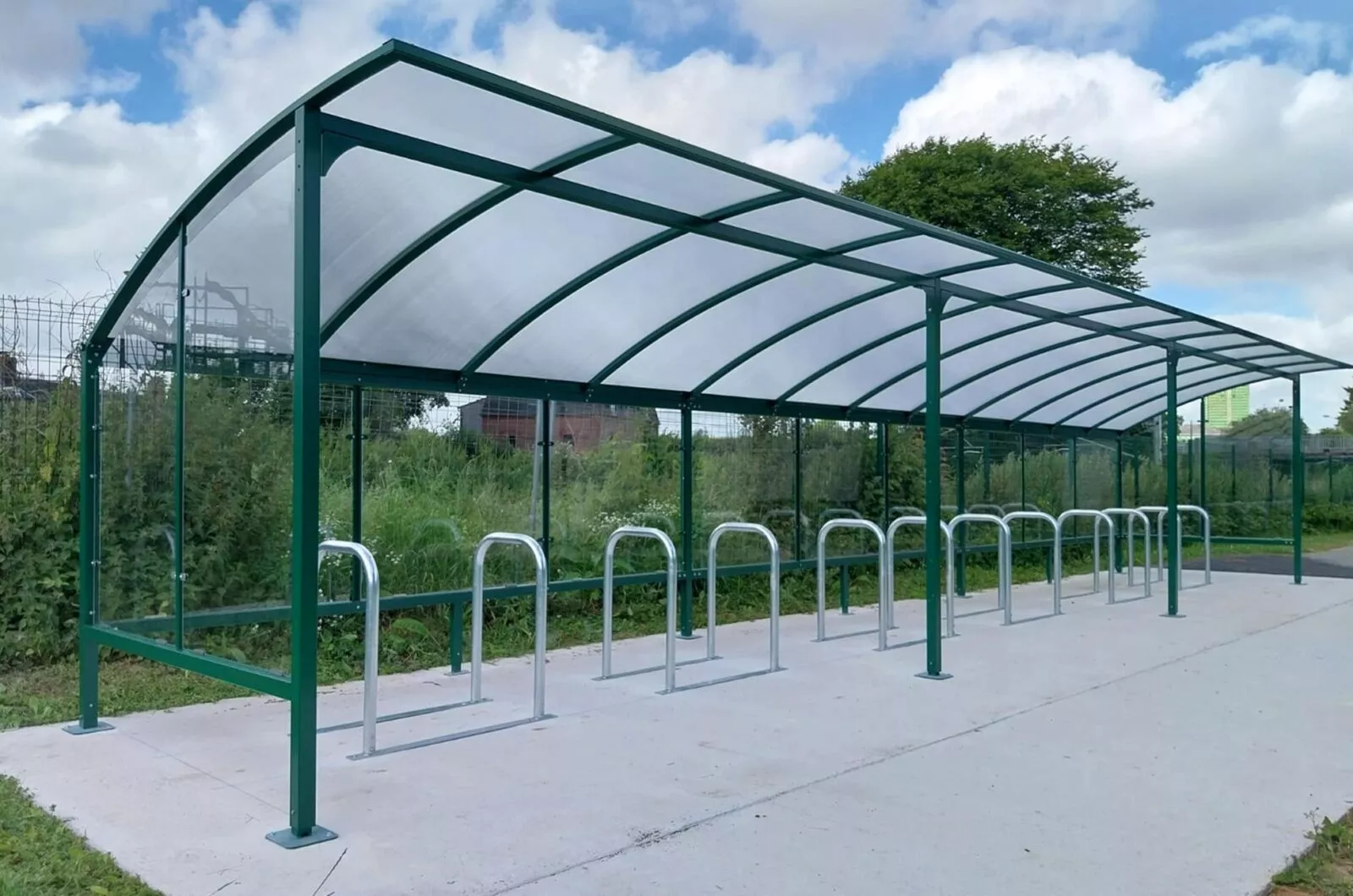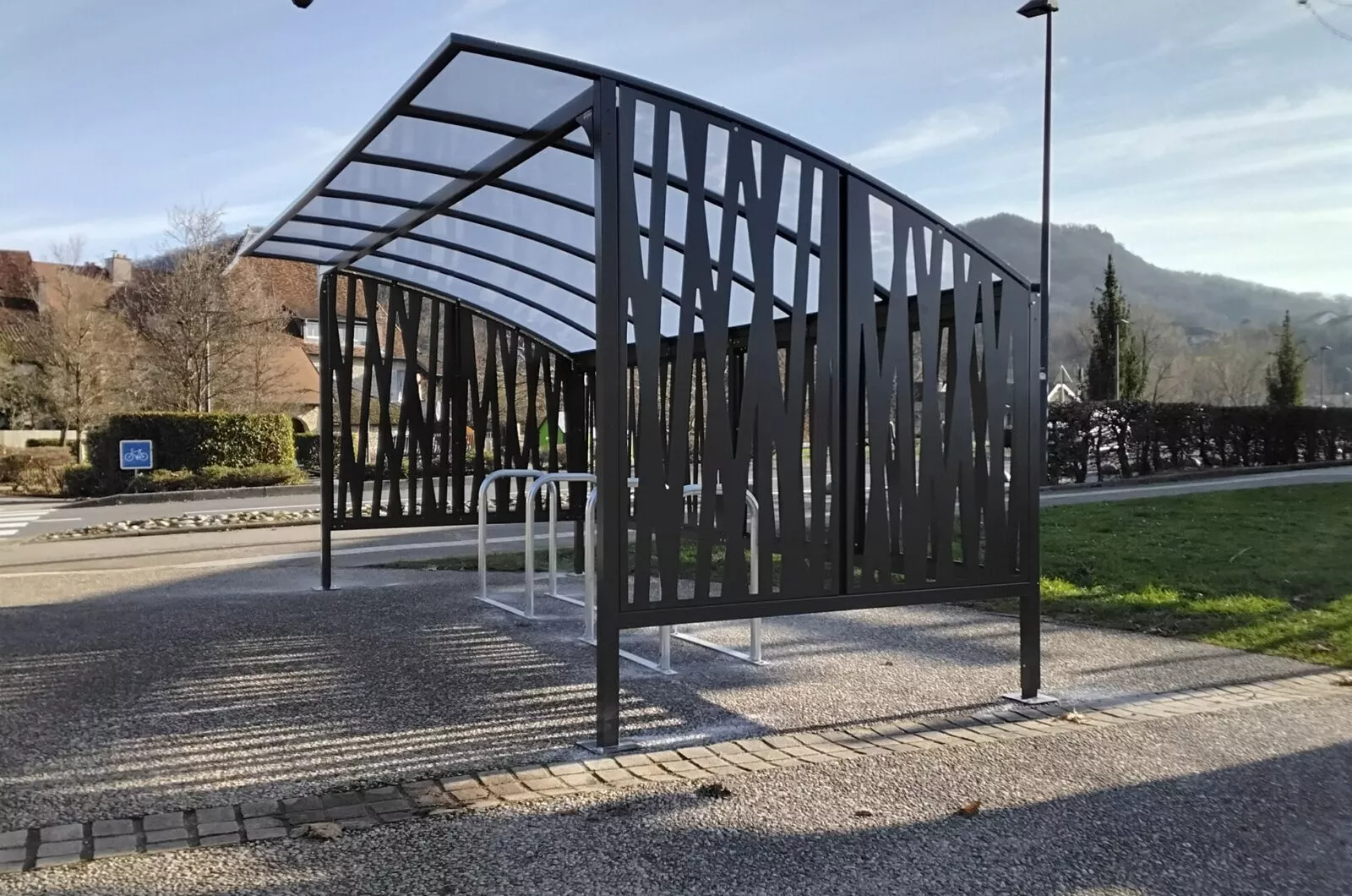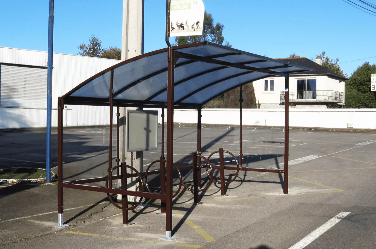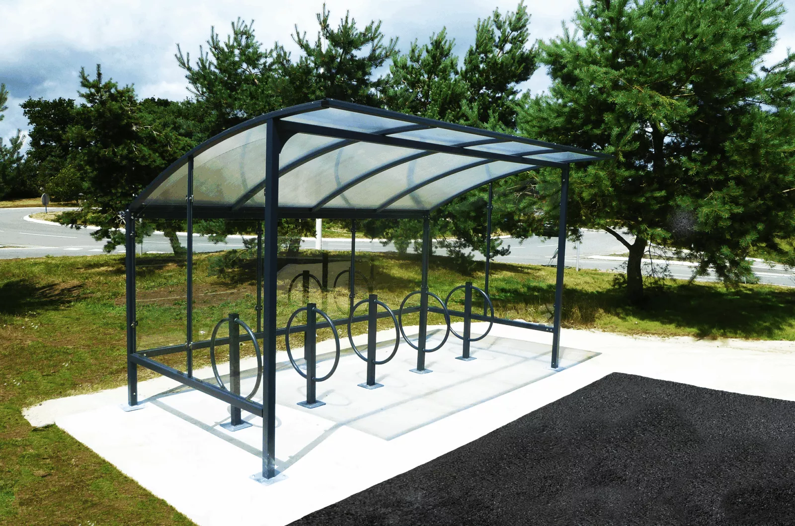 – Abri simple (4×2,5m) peut accueillir 10 emplacements vélos selon le support vélos choisi,