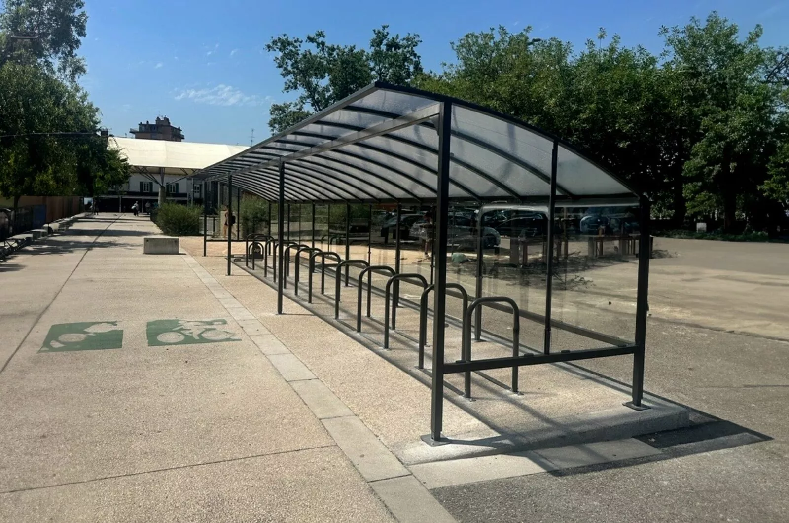 – Abri double dos à dos (4x5m) et Abri double côte côte (8×2,5m) sont prévus pour stationner 20 vélos et VAE.