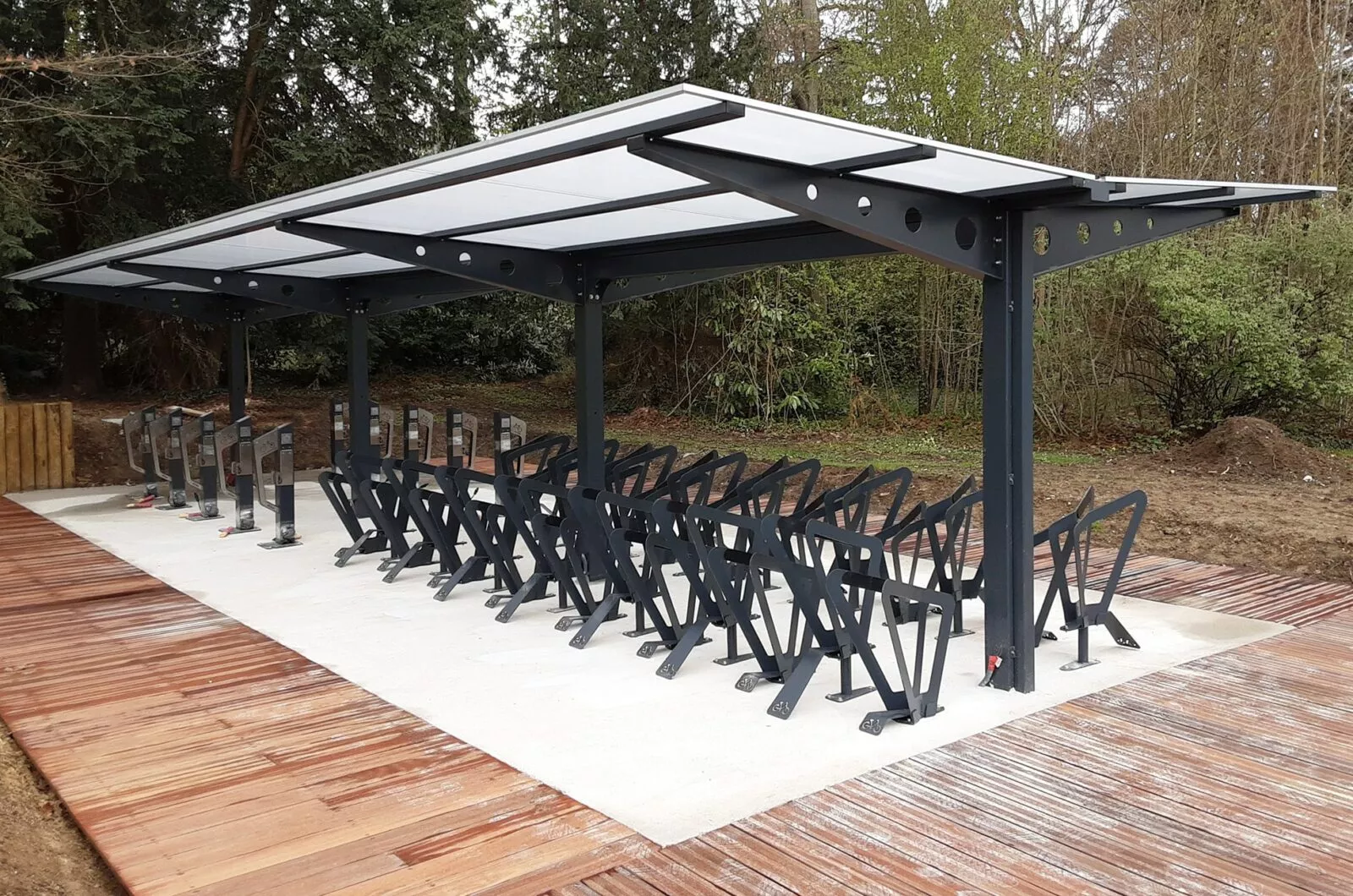 Cet abri vélo peut être réalisé en 4, 8 ou 12 mètres de long.