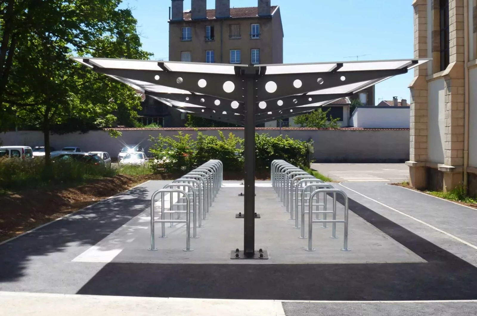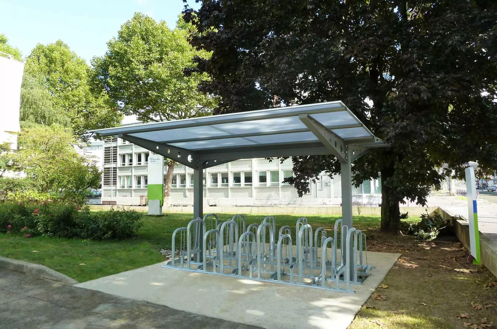 Les abris cycles peuvent être complétés avec différentes options telles qu’un système d’éclairage, des corbeilles de propreté et/ou des bornes vélos.